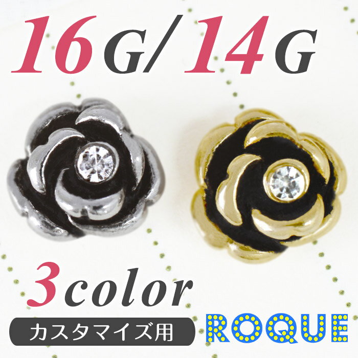 ボディピアス キャッチ 16G 14G 薔薇一粒ジュエル(1個売り)◆オマケ革命◆